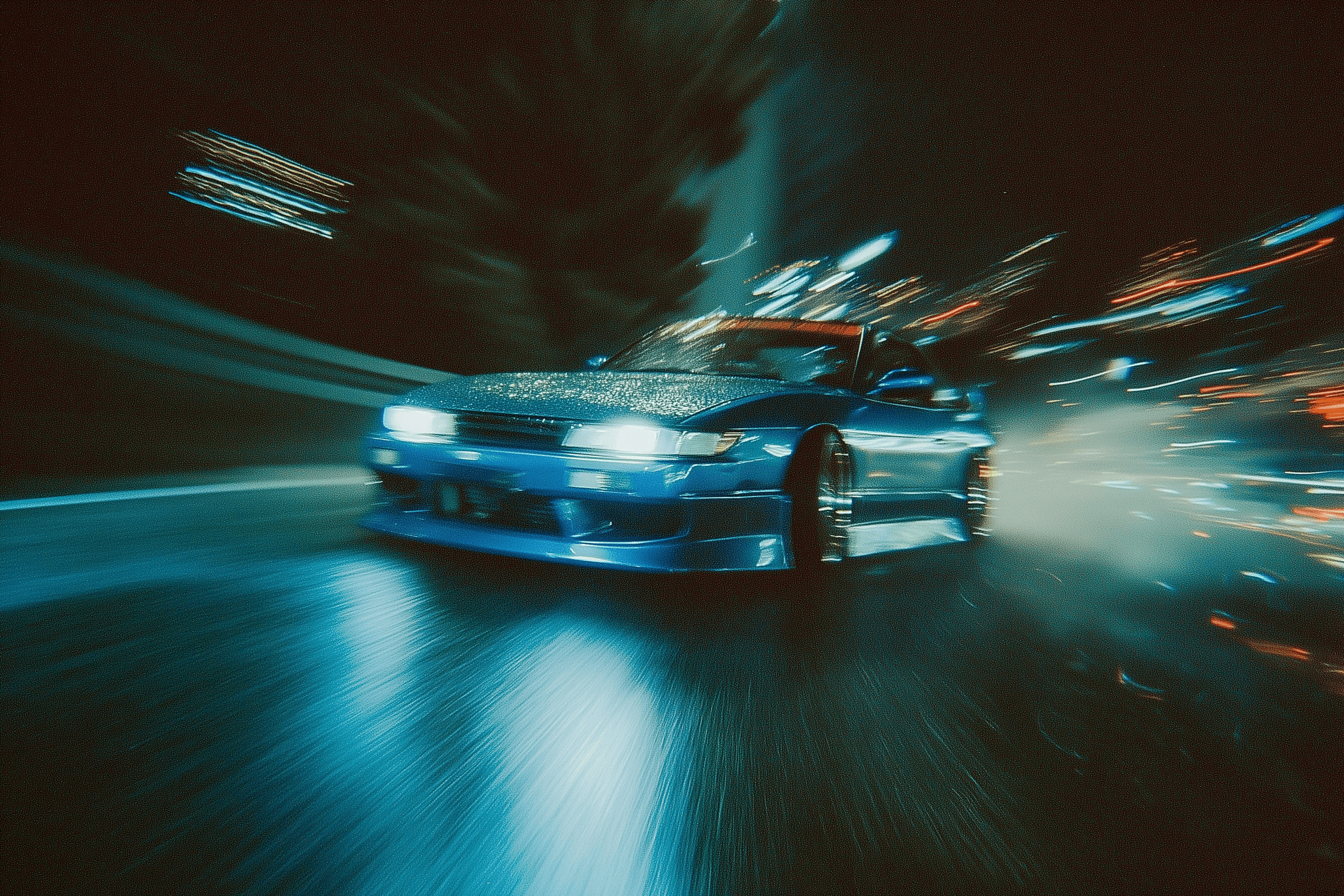 Inspired by distortion and light displacement, Redshift explores how velocity alters perception. Rain, reflections, and stretched highlights blur the boundary between object and environment, producing imagery that feels both mechanical and abstract.